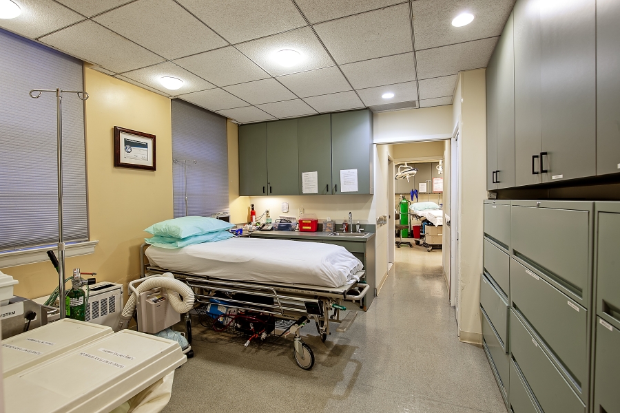 The office boasts a fully certified AAAASF surgical suite, featuring a state-of-the-art operating room, a spacious recovery room, and a private waiting area. On the other side of the office, a full reception and elegant waiting room welcome patients. The back office space is versatile, perfectly suited for billing operations or a nurse’s station. Two oversized private consultation rooms bookend the three large treatment rooms, creating an efficient layout for patient flow. This configuration is ideal for multiple doctors or practices, and the second private office can easily be converted into a fourth exam room to accommodate additional needs. High ceilings and windows in every room flood the space with natural light, creating a serene and professional environment.