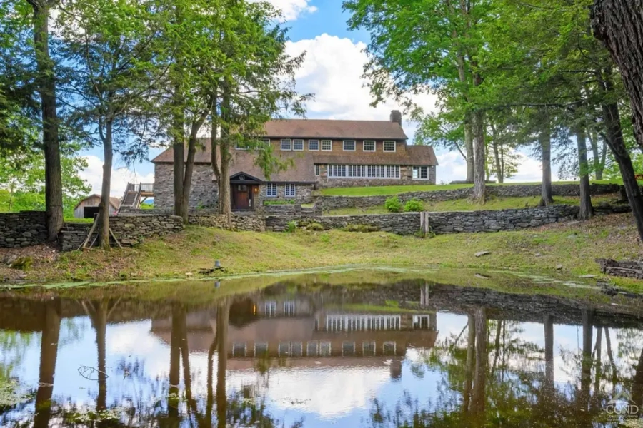 Take a ride in the scenic mountains near Tannersville NY and you will have the opportunity to wander down a magical drive that will transport you back in time to the Golden Age of The Catskills, and to Caddam Hill. Once the home of the famous actress Maude Adams, you can hear echoes of a time gone by from every corner of the estate’s 31 acres, which are comprised of majestic mountain views, an extensive trail system that passes a spring-fed pond, and lovely sparkling streams. The estate’s acreage offers an abundance of natural beauty and privacy for your exclusive enjoyment; but, meander among the trees, and you’ll also connect to the Mountain Top Arboretum (156 acres of protected land) and Hunter Foundation (136 acres) which are both adjacent to this property, as is the well-known artist and writer’s retreat, Onteora Club – where Maude Adams once mounted theatricals with friends. The warmth and charm that envelopes you when you walk through the front door of Caddam Hill follows throughout the home. Enter the stunning great room, take in the original woodwork, beams & gleaming oak floors – the stone fireplace will surely capture your attention until you look through the antique windows at the spectacular mountain views. Breathtaking sunsets can be enjoyed from every room on the south side of the house and from the expansive wrap-around deck. This beautiful, historic property from the 1900’s has been updated for modern comfort and practicality in every way imaginable, without losing any of its prodigious original character. If the walls could talk the stories would amaze you. Standout spaces include a well-appointed chef’s kitchen, billiards room, media room, gym, a cozy bar, and elegant primary suite with fireplace. Caddam Hill is convenient to the many attractions in the vibrant 4-season Catskills community: Kaaterskill Falls, Twilight Park, Hunter Mountain Ski Resort, the trails of Catskill Park, Colonial Country Club, Colgate Lake, the charming Village of Tannersville, performing arts venues, restaurants (it’s a mere 0.2 miles to The Deer Mountain Inn), and area festivals are just of few of the nearby notables. – WELCOME TO CADDAM HILL.